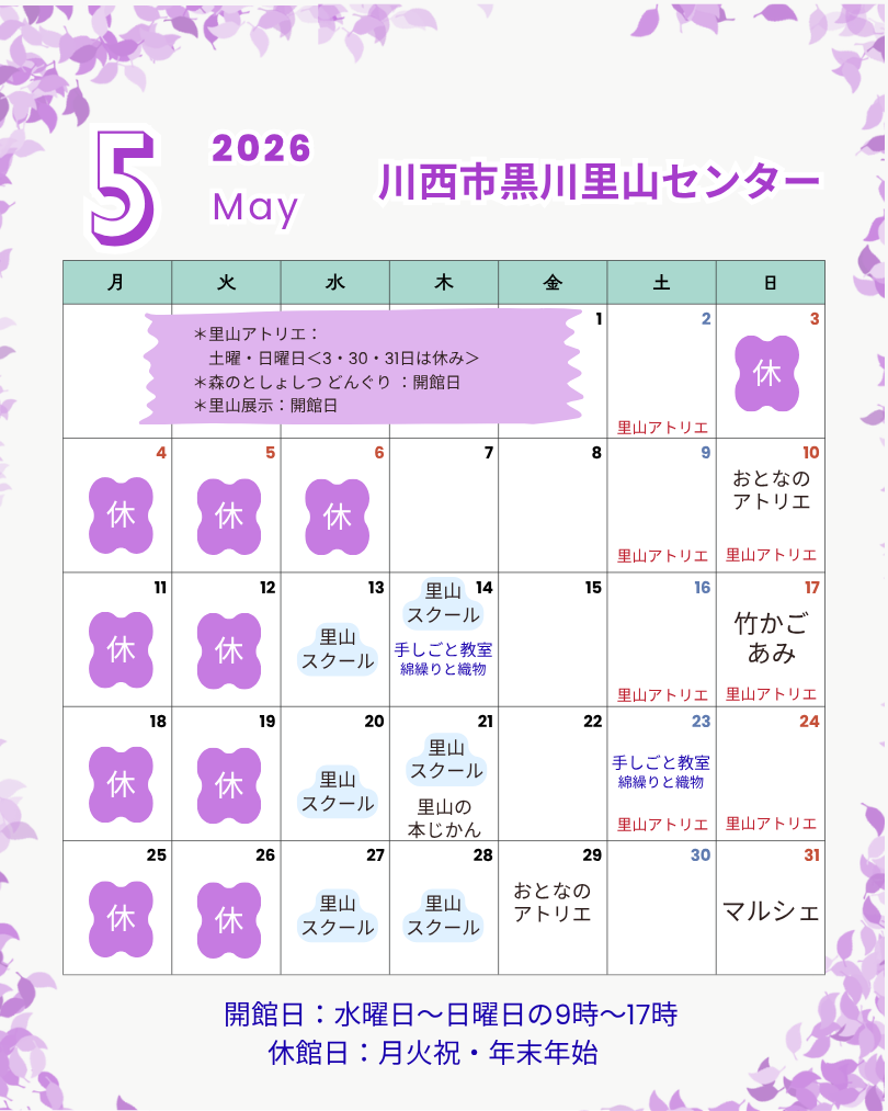 【黒川里山センター 🎏 5月カレンダー】